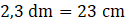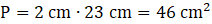 Musisz policzyć pole prostokąta o wymiarach 2 cm na 2,3 dm, czyli wymnożyć te cyfry.
