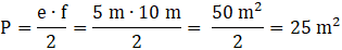 Po wymnożeniu długości przekątnych i podzieleniu przez 2 otrzymałeś pole rombu.