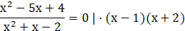 Wyrażenie w mianowniku ułamka musi być różne od zera. Definiujemy założenia, a potem wyznaczamy miejsca zerowe funkcji w liczniku. Jeżeli pierwiastki należą do dziedziny, to są rozwiązaniami równania.