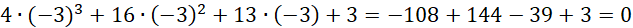 Wiedząc, że -3 jest pierwiastkiem równania na podstawie twierdzenia Bezouta stwierdź, że dany wielomian jest podzielny przez
