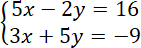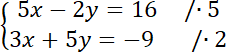 Zauważ, że całe pierwsze równanie należy pomnożyć przez 5, a drugie przez 2, aby współczynniki znajdujące się przy