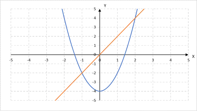 Punkt przecięcia prostych to (–1, –2) oraz (2, 4).
