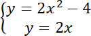 Układ równań rozwiążemy metodą podstawiania. Do pierwszego równania w miejsce y podstawimy 2x.