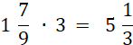 Pierwszym krokiem jest zamiana liczby mieszanej na ułamek niewłaściwy, a następnie skracamy 3 z 9 w mianowniku.