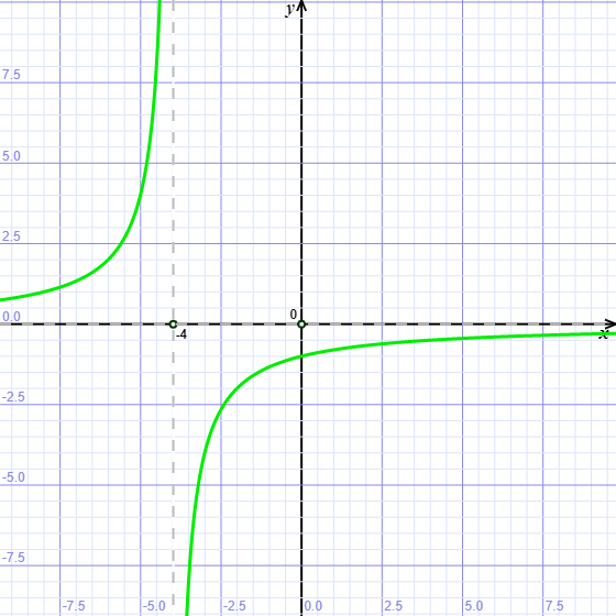W tym zadaniu musisz naszkicować wykres funkcji odpowiednio przesuwając wykres funkcji . Następnie odczytaj z rysunku dziedzinę i przedziały monotoniczności tej funkcji oraz równania asymptot jej wykresu.
