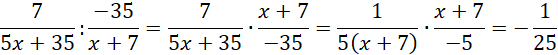 Pomnóż przez odwrotność. Wyłącz odpowiednie czynniki w wyrażeniu i skróć.