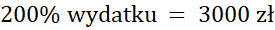 Odpowiedz na pytania, wykonując obliczenia w pamięci, 200% jakiego wydatki jest równy 3000 zł.