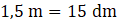 Musisz policzyć pole prostokąta o wymiarach 1,5 m na 4 dm, czyli wymnożyć te cyfry.
