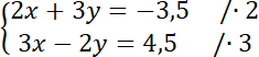 Zauważ, że całe pierwsze równanie należy pomnożyć przez 2, a drugie przez 3, aby współczynniki znajdujące się przy