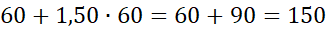 O 150% więcej niż 60 m to 150 m.