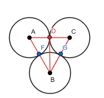 Środki okręgów tworzą trójkąt równoboczny o boku 2r, gdzie r–promień okręgu