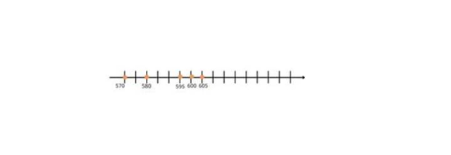 W tym zadaniu narysuj oś liczbową i przyjmując odpowiednią jednostkę zaznacz na niej liczby: 570, 580, 595, 600, 605.