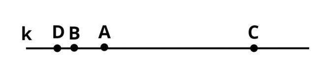 Narysuj prostą i zaznacz na niej 4 punkty, zgodnie z opisem.