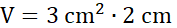 Jasnozielona bryła ma w podstawie trójkąt prostokątny o przyprostokątnych 3 cm i 2 cm.