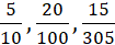 W podanych ułamkach znajdź i podkreśl te, które można skrócić przez konkretną liczbę: przez 2, przez 5 lub 10, przez 3.