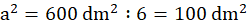| Pole powierzchni sześcianu | 54 cm2 | 150 dm2 | 13,5 m2 | 96 cm2 | 600 dm2 | 2400 mm2 |