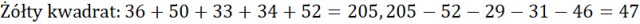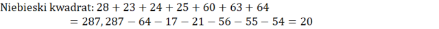 W tym ćwiczeniu musisz uzupełnić szare pola, tak aby powstały trzy kwadraty magiczne. Pamiętaj, że w takich kwadratach suma pól w pionie, poziomie i po skosie jest taka sama.