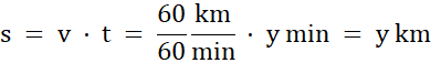 i w ciągu y minut, jeśli jechał z prędkością 60