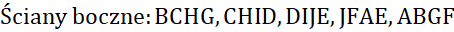 W tym ćwiczeniu musisz, patrząc na rysunek, podać podstawy i ściany boczne bryły. Ściany boczne są zawsze prostokątami.