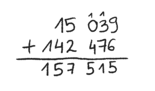W tym zadaniu musisz dodać 15 039 i 142 476 sposobem pisemnym.