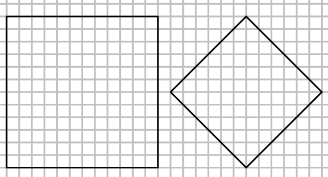 W tym zadaniu musisz narysować dwa kwadraty takie, że bok jednego i przekątna drugiego mają po i porównać ich pola.