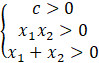 Z własności f(0) > 0, po podstawieniu argumentu 0 do wzoru funkcji, wynika zależność c > 0. Zapisz zależności z wykorzystaniem wzorów Viète’a – jeśli oba miejsca zerowe mają być ujemne, ich iloczyn będzie dodatni a suma ujemna. Przedstaw wszystkie własności w formie układu nierówności. Z informacji, że c > 0 oraz