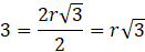 Środki okręgów tworzą trójkąt równoboczny, którego bok ma długość równą 2r. Odległość środka okręgu od punktu styczności dwóch pozostałych jest wysokością tego trójkąta. Możesz ułożyć równanie opisujące wysokość trójkąta (równą 3) w zależności od długości boku (2r) za pomocą wzoru na wysokość trójkąta równobocznego. Otrzymasz w ten sposób równanie, którego rozwiązaniem jest szukany promień okręgów.
