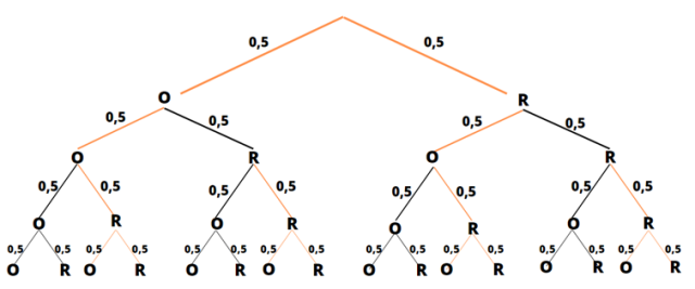 W tym zadaniu musisz narysować drzewo dla doświadczenia polegającego na czterokrotnym rzucie symetryczną monetą, zaznaczyć na nim zdarzenia elementarne sprzyjające zdarzeniu A – w drugim rzucie wypadł orzeł, a w trzecim – reszka oraz obliczyć jego prawdopodobieństwo.
