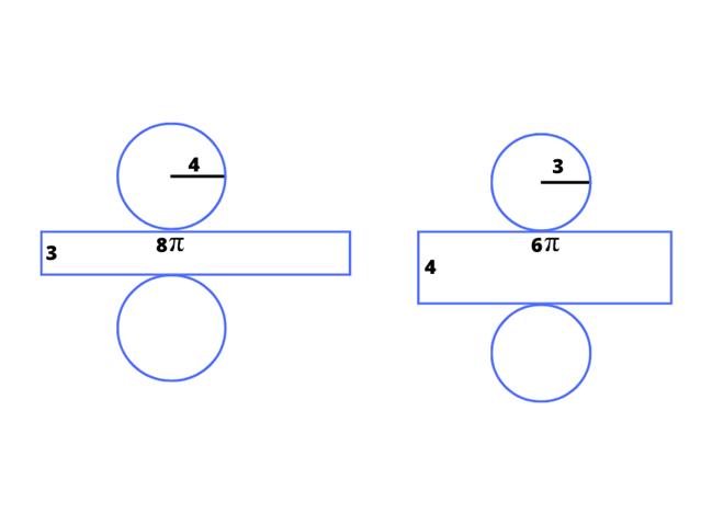 Narysuj koła i prostokąt o odpowiednich wymiarach.