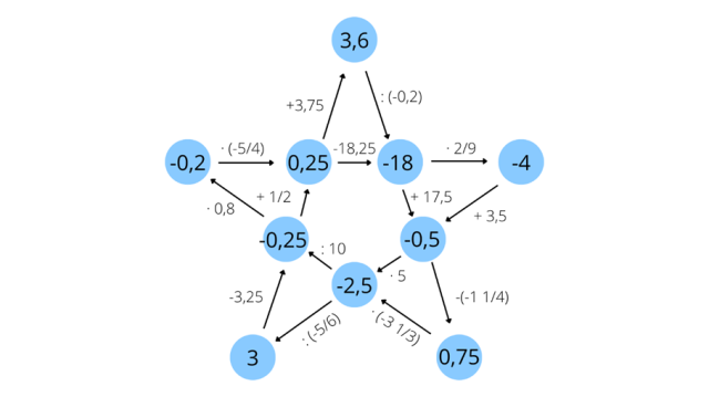 Aby ułatwić sobie wykonanie zadania możesz zamienić wszystkie liczby na ułamki zwykłe. Ułamkami zwykłymi łatwiej liczy się w pamięci. Przykładowa zamiana ułamka dziesiętnego na zwykły: 3,6 = .