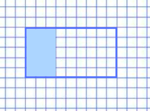 Policz, ile kratek jest zamalowanych na niebiesko w pierwszym prostokącie, ile kratek ma cały prostokąt i utwórz z tych liczb ułamek. Następnie policz kratki drugiego prostokąta i utwórz rozszerzony ułamek pierwszy. W pierwszym prostokącie zamalowanych jest: