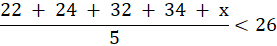 Kasia otrzymała 22 punkty ze sprawdzianu z matematyki, Ewa - 24, Agata - 32, a Paulina - 34. Oblicz, jaki wynik uzyskała Gosia, jeśli średnia punktów dziewczyn, wynosiła mniej niż 26.