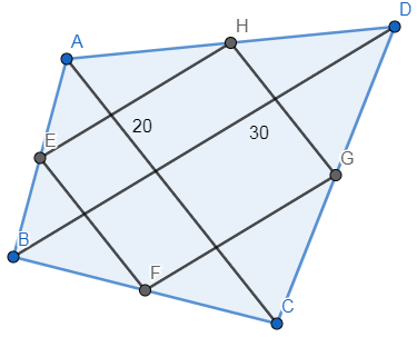 W tym zadaniu musisz obliczyć obwód czworokąta, wiedząc, że jego przekątne mają długość 20 oraz 30.