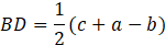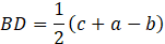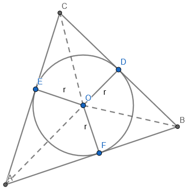 Oznaczmy AB jako c, BC jako a, zaś CA jako b. Zauważmy, że z twierdzenia o odcinkach stycznych zachodzi: