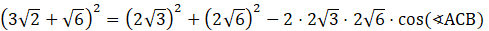 Dla dowolnego trójkąta kwadrat jednego z boków jest równy sumie kwadratów dwóch pozostałych odjąć podwojony iloczyn długości tych boków oraz cosinusa kąta między nimi.
