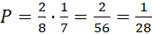 Oblicz, zgodnie z regułą iloczynu, iloczyn prawdopodobieństwa w pierwszym i drugim losowaniu. Zauważ, że w losowaniu ze zwracaniem prawdopodobieństwa, które mnożysz, są równe, a w losowaniu bez zwracania prawdopodobieństwo zmienia się (jedna czarna kula jest wyciągnięta i w worku pozostaje 7, nie 8 kul).