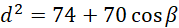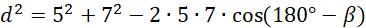 Z twierdzenia cosinusów zastosowanego do trójkąta ADB otrzymasz:
