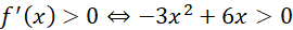 Sprawdź, kiedy pierwsza pochodna przyjmuje dodatnie wartości:
