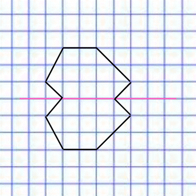 Narysowana figura to przykład. Możesz narysować każdą inną. Figura osiowosymetryczna to taka, której punkty po drugiej stronie osi są dokładnie takie same jak po pierwszej stronie.