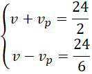 Wyznacz prędkość własną łodzi oraz prędkość prądu rzeki, jeśli płynąc w dół rzeki, łódź pokonała 24 kilometry w 2 godziny, a droga powrotna łodzi trwała trzykrotnie dłużej.