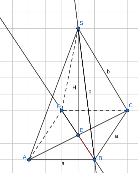 Prosta BE jest rzutem prostokątnym prostej BS na płaszczyznę ABCD.
