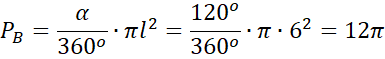 Wyznacz pole podstawy i pole powierzchni całkowitej tego stożka, jeśli na rysunku przedstawiono wycinek koła, który po zwinięciu jest powierzchnią boczną stożka.