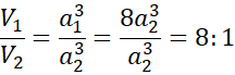 Wyznacz stosunek objętości sześcianów, jeśli pole powierzchni pierwszego jest czterokrotnie większe od pola powierzchni drugiego.
