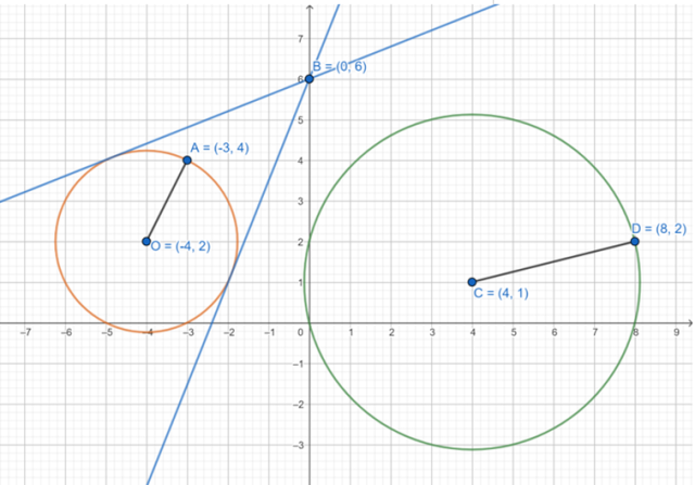 Poniższy rysunek jest przykładowy. Możesz w innych miejscach zaznaczyć punkty, przez co dostaniesz inne okręgi, które mogą mieć inne położenie względem siebie.
