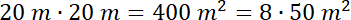 Oblicz, trzeba kupić opakowań nasion do obsiania działki o wymiarach 20 m × 20 m, jeśli 1 opakowanie wystarczy na obsianie 50 m2.