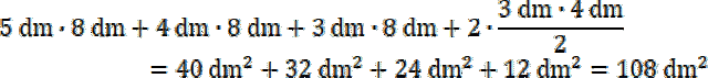 Oblicz pole powierzchni graniastosłupa dodając pola jego ścian bocznych i dwukrotność pola jego podstawy.