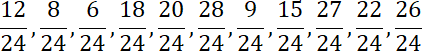 Pomnóż liczniki i mianowniki kolejno przez: 12, 8, 6, 6, 4, 4, 3, 3, 3, 2 i 2.