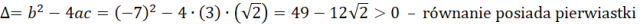 Musisz obliczyć deltę równania, by ocenić, czy równanie posiada rozwiązania, następnie musisz policzyć sumę oraz iloczyn pierwiastków ze wzorów Viete’a.