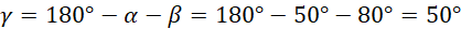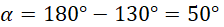 Kąt α jest kątem odpowiadającym z kątem (180°–130°), więc: