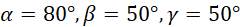 Kąt α jest kątem odpowiadającym z kątem 80°, więc: